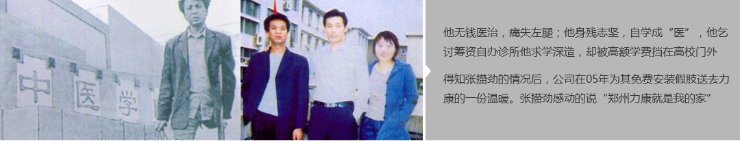 鄭州市力康假肢矯形器有限公司(簡稱力康),是一家專業(yè)從事假肢矯形器的設(shè)計、研發(fā)、制作及裝 配的專業(yè)機構(gòu)。成立于1992年是河南省唯一一家福利企業(yè)。力康下設(shè)業(yè)務(wù)部、技術(shù)部、住院部、康復(fù) 部、售后服務(wù)部,并配有現(xiàn)代化的裝配車間和功能齊全的訓(xùn)練大廳,為殘疾朋友康復(fù)訓(xùn)練提供了可靠 保障。總經(jīng)理穿戴假肢多年,有著豐富的臨床經(jīng)驗和親身體會;多年來,力康已為全國幾十萬名殘疾 朋友安裝上舒適、美觀、耐用的假肢和矯形器具,使他們更大限度地恢復(fù)了正常的工作和生活。“產(chǎn) 品即人品”的質(zhì)量理念、先進(jìn)的技術(shù)、實惠的價格、完善的售后服務(wù)是力康取勝的法寶……